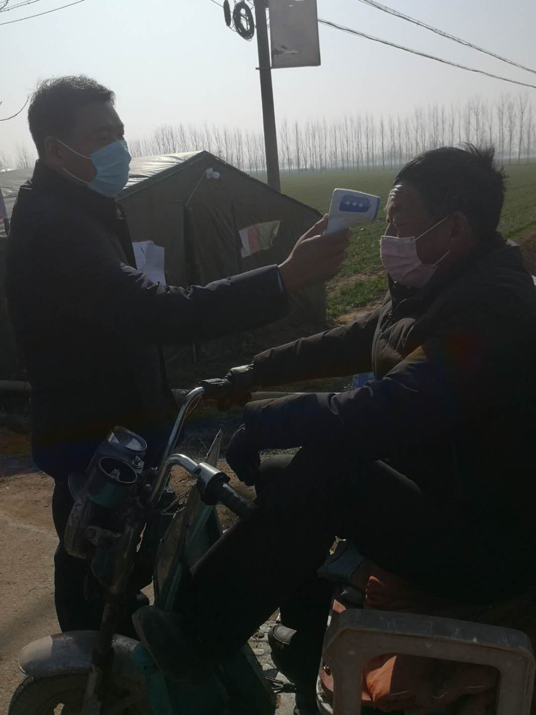 由于物資未曾到位,檢測點(diǎn)僅簡單搭了一頂四面透風(fēng)的帳篷,紀(jì)占東跟其他工作人員一起在寒風(fēng)中檢查登記出入人員、測量體溫,天氣寒冷,吃飯也只能用饅頭、泡面對付,但是內(nèi)心是火熱的。紀(jì)占東說在防控工作中,絕大部分群眾理解和支持的,有群眾在家里燒好開水給值班人員送,還有的群眾送來暖手寶、熱氣騰騰的飯菜......這些都是他工作的動力和源泉。