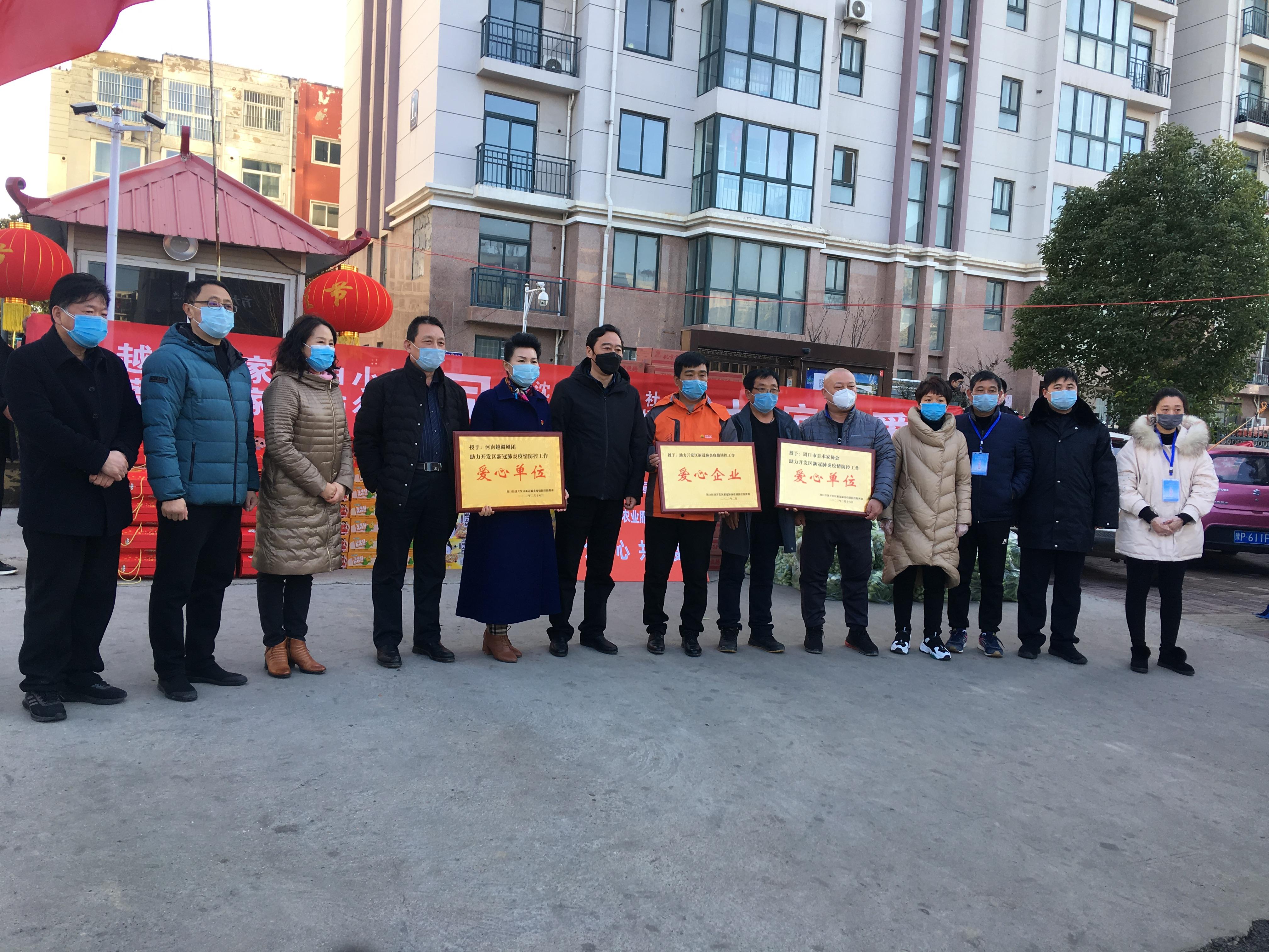 3月16日,越調(diào)名家、河南越調(diào)劇團(tuán)團(tuán)長(zhǎng)申小梅偕同愛(ài)心企業(yè)為開(kāi)發(fā)區(qū)居家隔離群眾送來(lái)生活用品,助力開(kāi)發(fā)區(qū)疫情防控工作。開(kāi)發(fā)區(qū)管委會(huì)主任劉濤,管委會(huì)副主任谷靜、于杰參加捐贈(zèng)活動(dòng)。開(kāi)元路產(chǎn)業(yè)集聚區(qū)泰和公館小區(qū)于2月3日出現(xiàn)一起疑似病例,2月4日被確診為新冠肺炎。為有效切斷病毒傳播渠道,經(jīng)開(kāi)發(fā)區(qū)和市新冠肺炎疫情防控指揮部溝通,決定對(duì)泰和公館小區(qū)居民實(shí)行居家隔離,開(kāi)發(fā)區(qū)在泰和公館小區(qū)門(mén)口設(shè)置卡點(diǎn),要求小區(qū)所有人員居家隔離。申小梅等心系被隔離群眾,積極聯(lián)系沈丘金豐公社、宛丘生態(tài)農(nóng)場(chǎng)、國(guó)風(fēng)藝術(shù)中心三家企業(yè),決定對(duì)他們實(shí)施愛(ài)心捐助。當(dāng)日,申小梅偕同沈丘金豐公社、宛丘生態(tài)農(nóng)場(chǎng)、國(guó)風(fēng)藝術(shù)中心,為泰和公館小區(qū)居民送來(lái)了小面包30箱、熱狗腸20箱、八寶粥30箱、方便面37箱、青菜50包。 開(kāi)發(fā)區(qū)管委會(huì)主任劉濤對(duì)申小梅等愛(ài)心人士的義行善舉表示感謝,表示有各界的大力支持,有廣大群眾的積極支持,有一線工作人員的努力付出,開(kāi)發(fā)區(qū)一定能夠戰(zhàn)勝疫情,奪取疫情阻擊戰(zhàn)的最后勝利。 開(kāi)發(fā)區(qū)疫情防控指揮部為河南越調(diào)劇團(tuán)、市美術(shù)家協(xié)會(huì)和愛(ài)心企業(yè)頒發(fā)“助力開(kāi)發(fā)區(qū)新冠肺炎疫情防控工作愛(ài)心單位(企業(yè))”牌匾。我市著名畫(huà)家?guī)熜欣⒓泳栀?zèng)活動(dòng)。