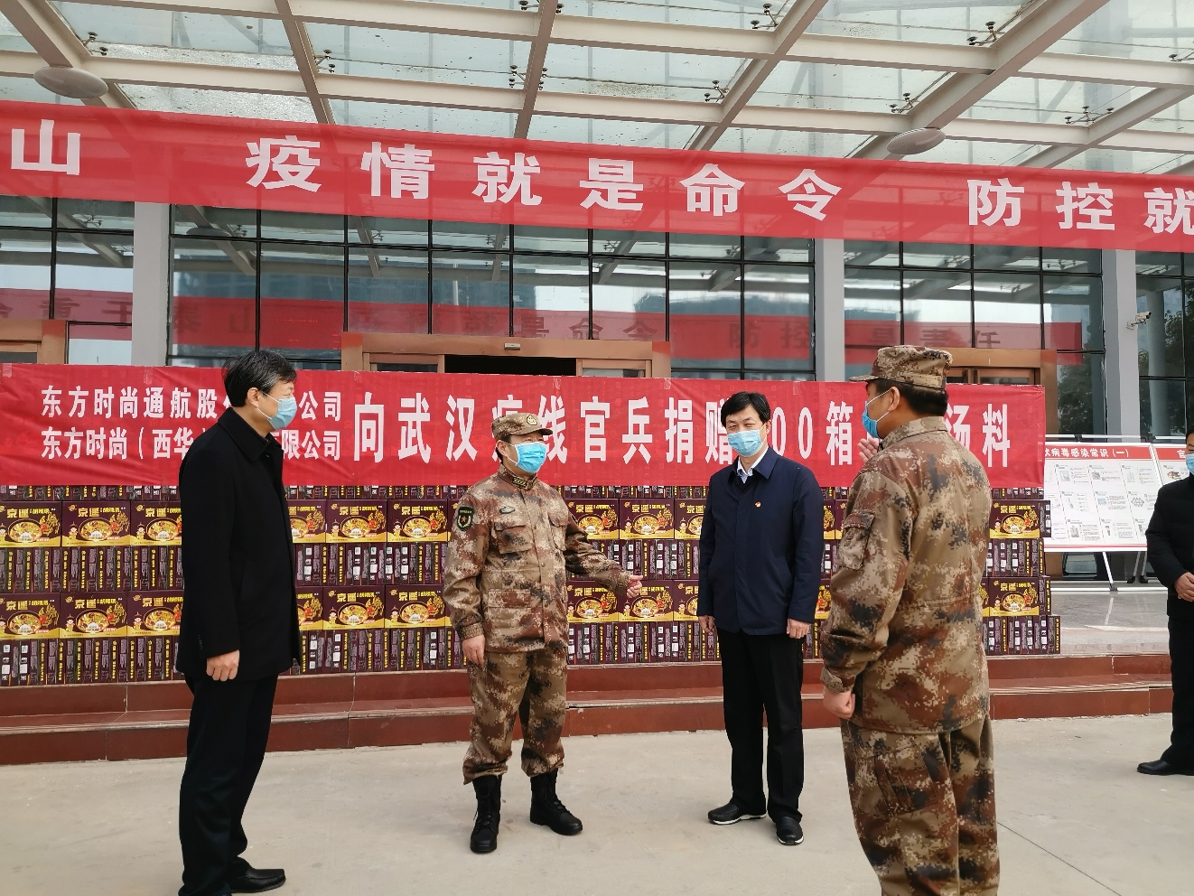 在西華縣人武部院內(nèi),東方時尚通航股份有限公司向武漢疫線官兵捐獻(xiàn)500件胡辣湯料,表達(dá)了企業(yè)對人民子弟兵的深情厚誼。王善沖代表部隊對企業(yè)慰問表示感謝。隨后,王善沖一行人又來到該縣大富城小區(qū),對堅守一線的工作人員表示慰問,鼓勵他們在疫情防控的關(guān)鍵時刻要繼續(xù)堅持、不能有放松麻痹思想。