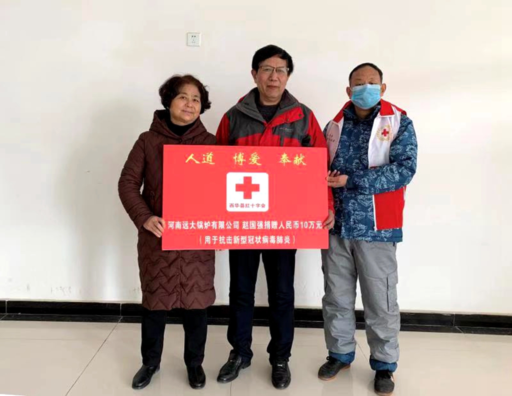 手術(shù)后在鄭州休養(yǎng)的河南遠(yuǎn)大鍋爐黨支部書記趙國強(qiáng),在看到廣大醫(yī)護(hù)人員、共產(chǎn)黨員紛紛申請到抗疫一線時,他躺不下了,不顧身體病痛,于1月31日和家屬專程趕回西華,向西華縣紅十字會捐款10萬元,用于抗擊新型冠狀病毒感染的肺炎疫情防控工作。