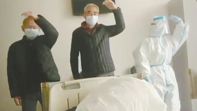 3月6日,周口援鄂醫(yī)療隊(duì)的微信群因?yàn)橐欢味兑粢曨l而變得歡樂。視頻中,兩位老人和一位穿著防護(hù)服的護(hù)士,正踩著“小黃鴨”的魔性節(jié)奏在病床前尬舞……