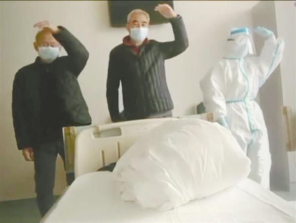 快樂會(huì)傳染,也是會(huì)升級(jí)的。3月6日,葛靜文成功“忽悠”43床和44床的兩位爺爺參演視頻,陪她尬舞。