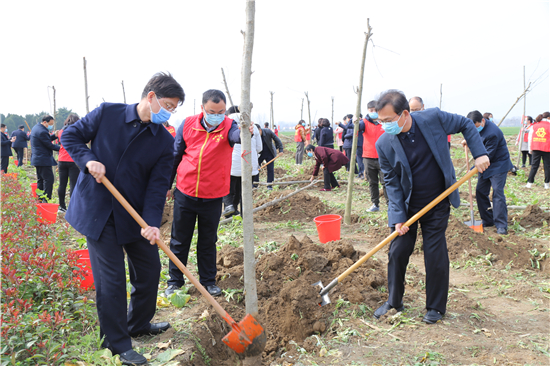 三埋土、兩踩實(shí)、一提根……三川大地春潮涌,植樹造林正當(dāng)時(shí)。3月12日上午,鄲城縣四個(gè)班子領(lǐng)導(dǎo)崔衛(wèi)國、李建軍、王偉等和廣大志愿者、群眾一起來到皇姑河畔義務(wù)植樹現(xiàn)場(chǎng),揮鍬鏟土,栽植新綠,為鄲城大地再添一片綠意。