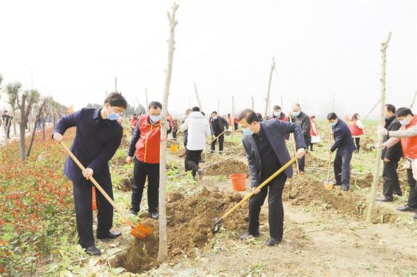 三埋土、兩踩實(shí)、一提苗……陽春三月,豫東大地植綠正當(dāng)時(shí)。縣領(lǐng)導(dǎo)崔衛(wèi)國(guó)、李建軍、王偉等和廣大志愿者、群眾一起揮鍬鏟土,栽植新綠,為鄲城大地再添綠意。