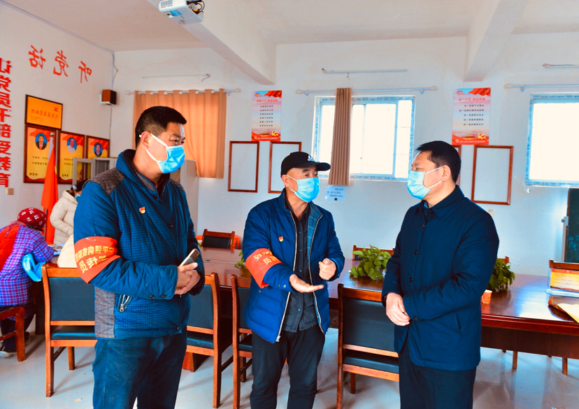 疫情就是命令。大年初一上午,寧平鎮(zhèn)王寨村支部書記張永亮在鎮(zhèn)政府接到任務(wù)后,就匆匆忙忙趕到村室與在縣里接到疫情防控命令趕來的縣公安局駐寧平鎮(zhèn)王寨村第一書記朱金光一起,迅速召開駐村隊員、三委班子和全體黨員會議,研究部署疫情防控措施,成立由支部書記、駐村第一書記雙任組長的疫情防控領(lǐng)導(dǎo)小組,吹響戰(zhàn)“疫”沖鋒號。