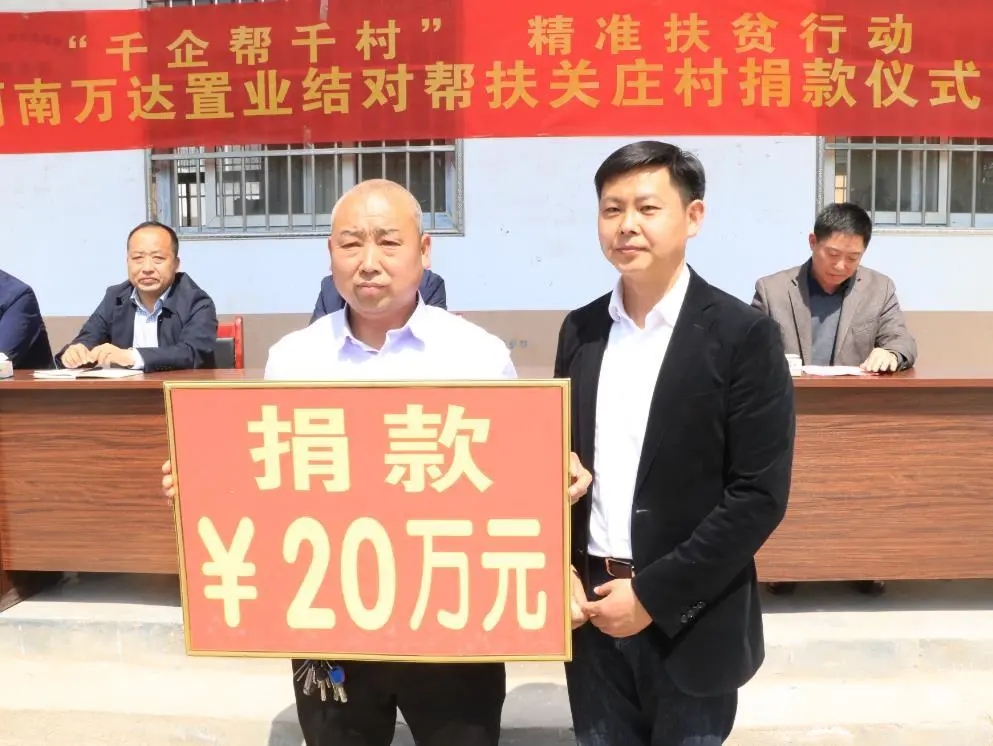 4月13日上午,河南萬達(dá)置業(yè)有限公司結(jié)對幫扶捐款儀式在市城鄉(xiāng)一體化示范區(qū)許灣鄉(xiāng)關(guān)莊行政村隆重舉行?,F(xiàn)場,該公司為關(guān)莊行政村捐款20萬元助力脫貧攻堅。