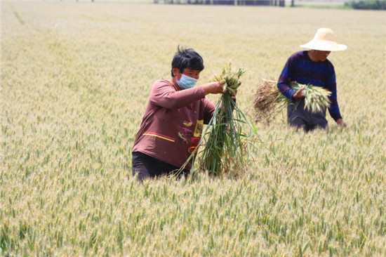 “今年共繁育良種小麥‘冠麥1號、中農4007’兩個品種,這兩個品種的特點就是產量高、抗災能力強。”棗集農場副場長趙云霄介紹,我們要做的工作就是徹底清除田間雜株、雜草、雜穗、大麥、燕麥,以保證小麥良種純度。小麥去雜提質對種子安全、糧食質量保障是非常重要的一環(huán),目前只能依靠人工去雜,經(jīng)過兩次去雜提純后,第一代良種即將迎來豐收,預計今年畝產將達到1200斤。