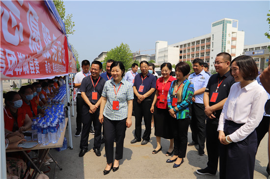 7月7日,全國高考進(jìn)行時(shí)。鄲城縣為大力弘揚(yáng)“奉獻(xiàn)、友愛、互助、進(jìn)步”的志愿服務(wù)精神,由中共鄲城縣委宣傳部、共青團(tuán)鄲城縣委聯(lián)合主辦,鄲城縣青年志愿者協(xié)會承辦,鄲城縣農(nóng)信社獨(dú)家贊助的愛心助考志愿服務(wù)活動(dòng)在全縣6個(gè)考點(diǎn)順利開展,身著紅馬甲的志愿者們成為服務(wù)高考的亮麗風(fēng)景線。