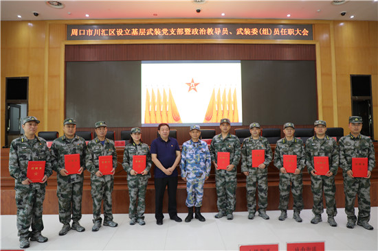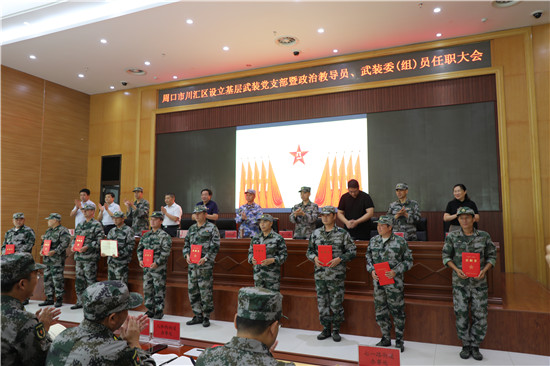 黨管武裝建設(shè)國防,軍民攜手共筑長城。為健全武裝工作組織領(lǐng)導(dǎo)體系為推動國防動員和后備力量建設(shè)在基層末端落實,7月16日上午,周口市川匯區(qū)召開基層武裝黨支部暨政治教導(dǎo)員、武裝委(組)員任職大會。周口軍分區(qū)司令員湯維政,區(qū)委書記、區(qū)人武部黨委第一書記李宗喜,市委組織部處級干部宋陽,區(qū)人武部政委高新傳、部長陳繼芳及城鄉(xiāng)一體化示示范區(qū)、經(jīng)濟開發(fā)區(qū)、港口物流產(chǎn)業(yè)聚集區(qū)等有關(guān)負(fù)責(zé)同志參加了大會。會上設(shè)立了18個基層武裝黨支部,任命了15名基層武裝部政治教導(dǎo)員、20名村(社區(qū))武裝委(組)員任職命令,武裝部政治教導(dǎo)員、武裝預(yù)建黨支部書記和兼職武裝委(組)員代表先后作了履職承諾發(fā)言,湯維政等為新任命的人員頒發(fā)了任職證書。