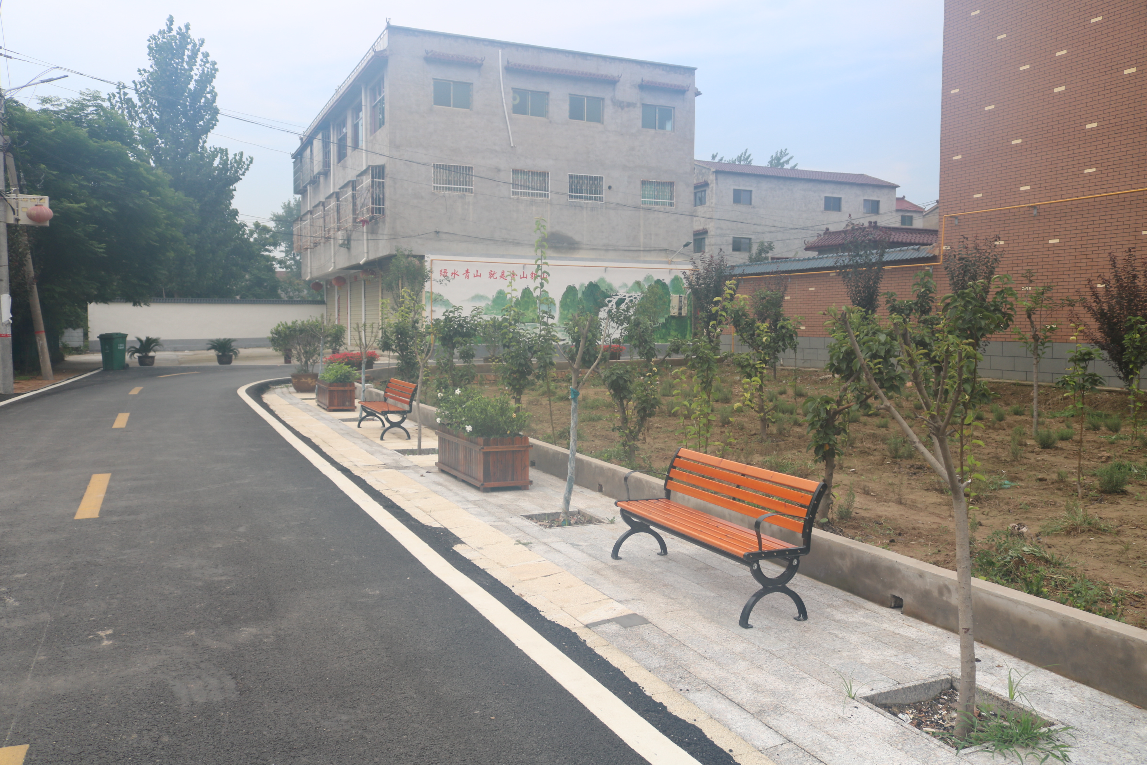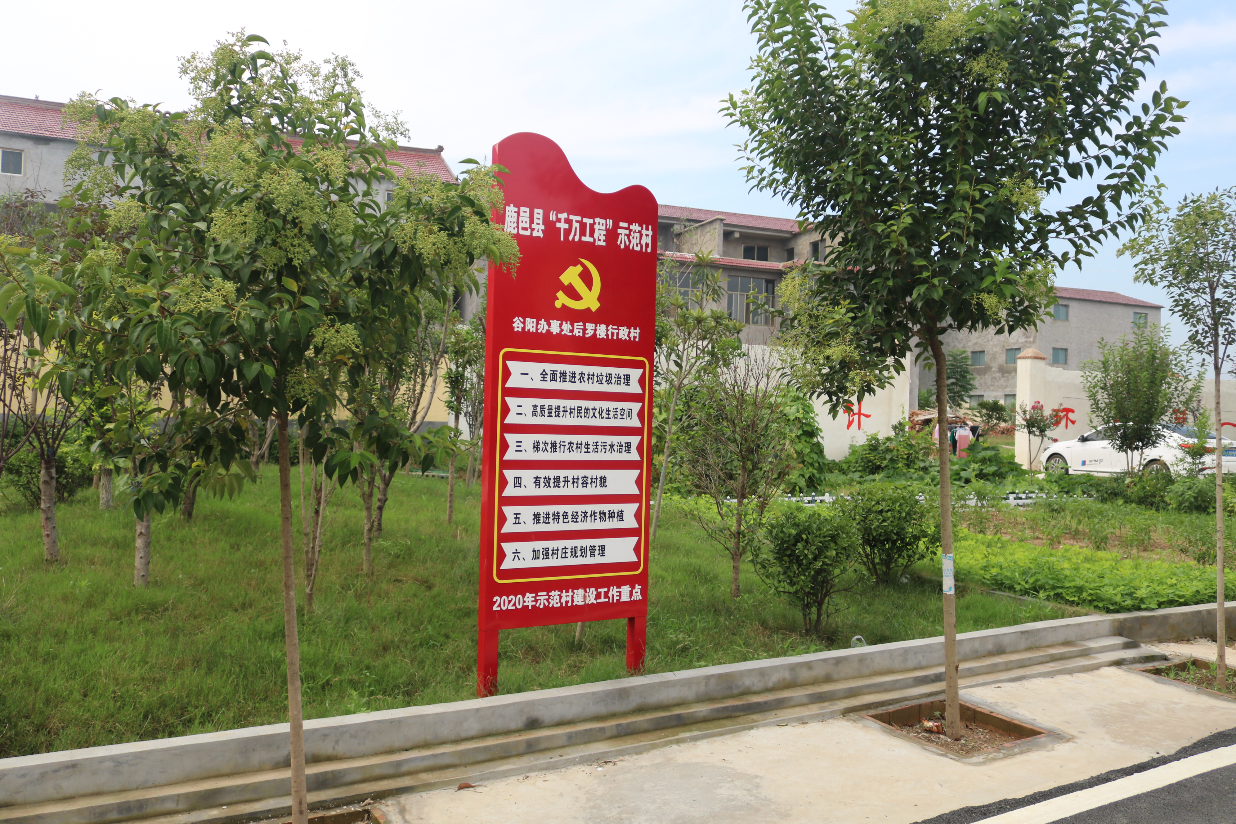 從該縣紫氣大道中段出發(fā),大約10分鐘的車程便抵達(dá)了后羅樓村。在該村東入口,一塊標(biāo)注有“鹿邑縣千萬工程示范村——后羅樓村”的標(biāo)牌格外引人注目。走進(jìn)村中,看到的是一棟棟錯(cuò)落有致的樓院,一條條新修的進(jìn)村道路標(biāo)線施劃有序、整潔的村道兩旁點(diǎn)綴著蔥郁的果樹,一幅恬靜悠然、生態(tài)宜居的美麗鄉(xiāng)村景象呈現(xiàn)在眼前。該村村室位于村南頭,在鮮花的果樹的掩映下,幾個(gè)保潔工作正在黨群服務(wù)中心和群眾文化廣場(chǎng)對(duì)面的果園除草,村室內(nèi)工作人員正在為前來辦事的村民辦理公務(wù)。