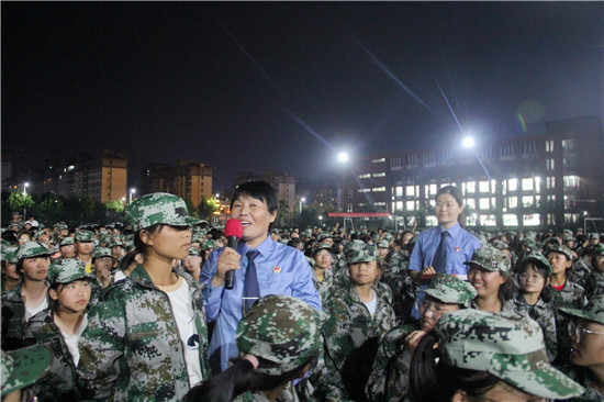 "你們正處于人生的花季,知識是養(yǎng)分,那么法律知識就好比是殺蟲劑,要學好,更要用好,要做到知法、守法、用法,在法治護航下遠離校園欺凌,拒絕電信網(wǎng)絡詐騙,不義之財不可取,防范之心不可無……”。8月29日晚上7點,黃昏謝去,暮色已經(jīng)模糊起來了,伴著淺淺的晚霞,扶溝縣檢察院檢委會專職委員郁玉琴帶領該院“女檢察官特別護未隊”的三名女檢察官到扶溝高中為正在接受軍訓的1600余名高一新生們上了一堂別開生面的法治課。