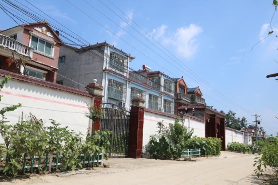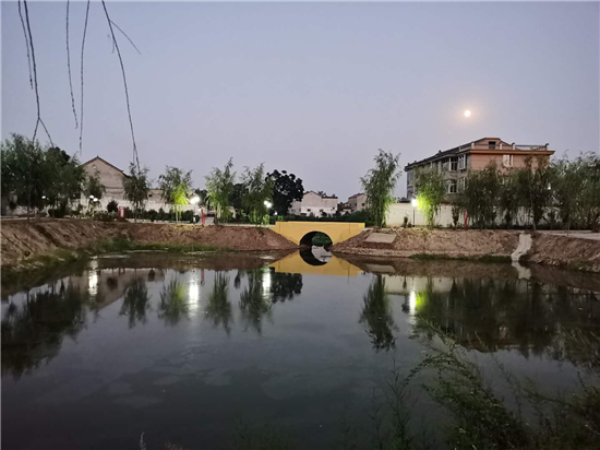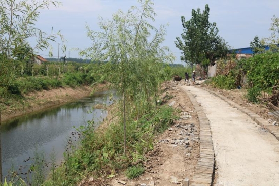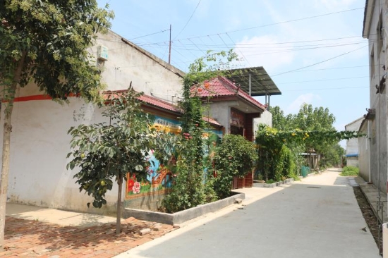 “整治后的坑塘邊綠村成蔭,不時(shí)有小鳥(niǎo)掠過(guò)水面又飛回樹(shù)梢;村頭巷尾、花開(kāi)四季,孩童們?cè)诖逯凶分疰音[,老人們?cè)诖宓郎镶蛔缘玫蒯溽嗌⒉剑瑲g笑不斷;群眾文化廣場(chǎng)上,村民集聚在這里休閑、娛樂(lè)、健身,成了村里人氣最旺的地方。”另一個(gè)具有代表性的鄉(xiāng)村振興新版本是馬鋪鎮(zhèn)最南端軍吳行政村,這個(gè)村子位于惠濟(jì)河北岸,207省道橫穿南北,轄軍吳,高口,高莊,吳樓,許莊,王莊,豆腐營(yíng)七個(gè)自然村,耕地面積4288畝,總?cè)丝跀?shù)4236人。近年來(lái),這個(gè)村子除大力發(fā)展中藥材、蔬菜等經(jīng)濟(jì)作物種植外,還以“二四四”工程和“雙強(qiáng)”村創(chuàng)建為抓手,開(kāi)展“美麗鄉(xiāng)村”行動(dòng),打造美麗庭院,對(duì)村中主次道路進(jìn)行硬化、綠化、美化、亮化,發(fā)展以生態(tài)為底色的宜居宜游農(nóng)旅村落,成為鹿邑縣首批“千萬(wàn)工程”示范村。