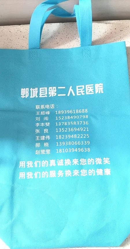送患者手提袋,等于送上了放大號的醫(yī)生名片,方便了更多的留守在家的空巢老人,讓更多患者實現(xiàn)足不出戶就可以聯(lián)系到免費的“家庭醫(yī)生”,得到正確及時的用藥指導(dǎo),從而有效降低了急病、突發(fā)病的發(fā)生,受到群眾好評。