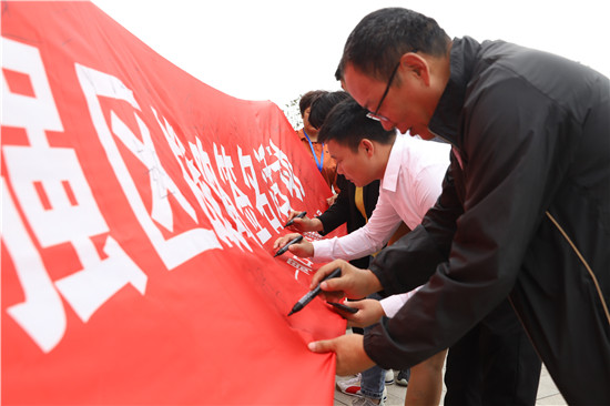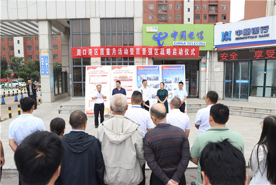 儀式上,周口市文明誠信企業(yè)、周口市港潤精密工業(yè)有限公司負責人翟振以“守初心、擔使命,推動高質(zhì)量發(fā)展”為題,向全區(qū)廣大企業(yè)、商戶發(fā)出開展質(zhì)量月活動、實施質(zhì)量強區(qū)倡議。