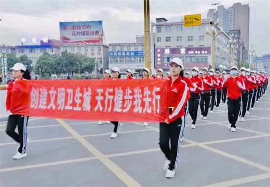 這是鄲城縣融媒體中心聯(lián)合縣人民公園天行健步隊(duì)共同舉行的“創(chuàng)文”宣傳活動(dòng)之一。近百名健步走愛好者積極響應(yīng)號(hào)召,走上街頭,用健步走的方式為“創(chuàng)文”助力。他們邁著矯健的步伐,做出整齊劃一的動(dòng)作,先后經(jīng)過新華路、育新路、廣場(chǎng)南路和府東路,一路“閃亮”、一路風(fēng)景,引來市民紛紛駐足觀看、點(diǎn)贊。