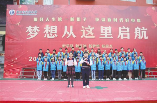 10月13日,是中國少年先鋒隊誕辰日,又稱少先隊建隊紀(jì)念日。周口市文昌小學(xué)堅持以立德樹人,把課堂教學(xué)與主題活動相結(jié)合,開展了多種多樣的“國旗下成長”主題教育活動。圖為在10月12日的升旗儀式上,六(4)中隊少先隊員向全校學(xué)生普及紅領(lǐng)巾知識。記者 王珂 通訊員 魏云紅 攝