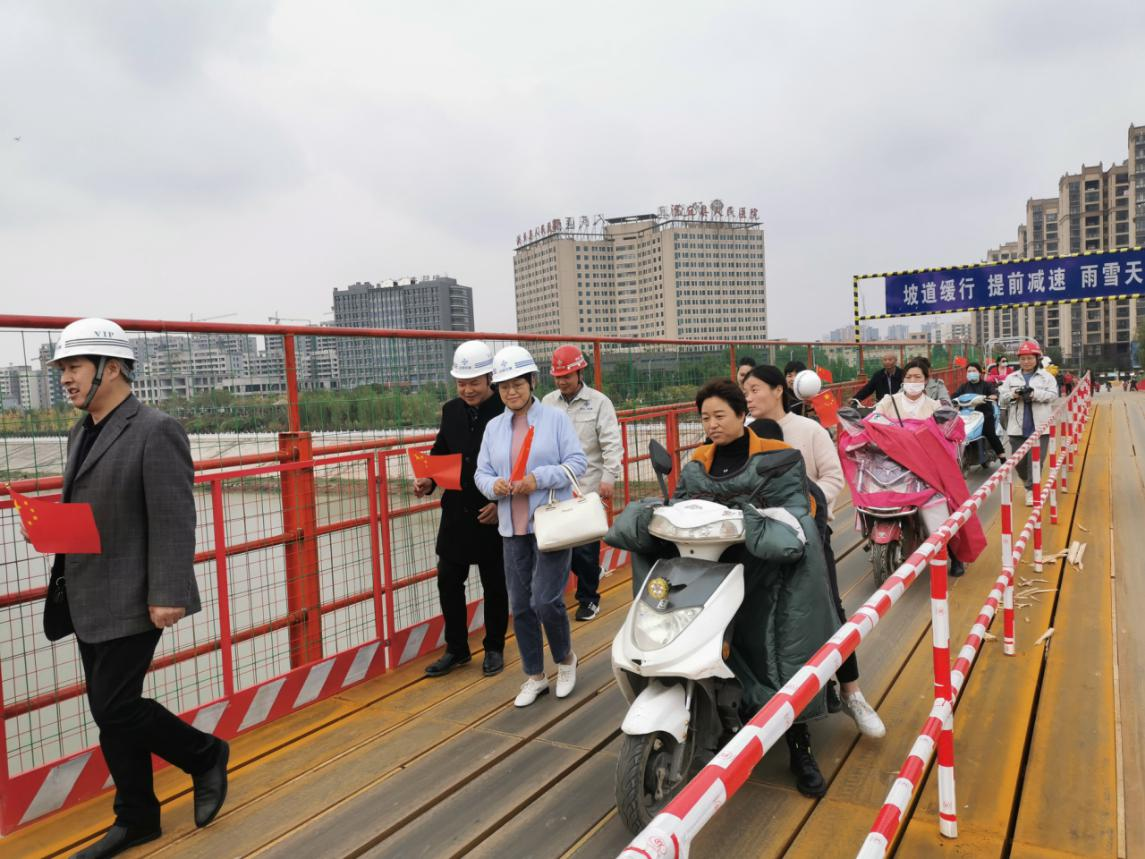 這位女士口中的便民橋位于潁濱公園內(nèi),由中交二航局沙潁河航道升級改造工程PPP項目部承建。 據(jù)悉,基于沙潁河升級改造,位于縣醫(yī)院東側(cè)的一座橋需要拆除。為方面行人通行,中交二航局沙潁河航道升級改造工程PPP項目部,歷經(jīng)兩個多月時間搭建完成。中交二航局沙潁河航道升級改造工程PPP項目部副部長王子龍告訴記者,受老橋下游側(cè)跨河高壓電纜影響,項目部在上游側(cè)約120米處布置一座跨河鋼便橋,便橋長266米,寬6.0米。為提高安全指數(shù),橋兩側(cè)的護欄高度由原計劃的1.30米,提升到1.80米。