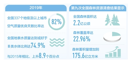 5年砥礪前行,污染防治攻堅戰(zhàn)全面推進。截至2019年底,“十三五”規(guī)劃綱要確定的生態(tài)環(huán)境領(lǐng)域9項約束性指標(biāo),有8項已提前完成。天藍水凈地綠的美麗中國正向我們走來。