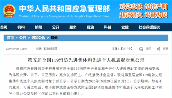 此次評選表彰工作堅(jiān)持公開、公平、公正的原則,按照自下而上、逐級推薦、民主擇優(yōu)的方式進(jìn)行,11月2日公示結(jié)束。據(jù)悉,這是首次將新組建的國家綜合性消防救援隊(duì)伍及其指戰(zhàn)員納入該獎(jiǎng)項(xiàng)評選表彰范圍。