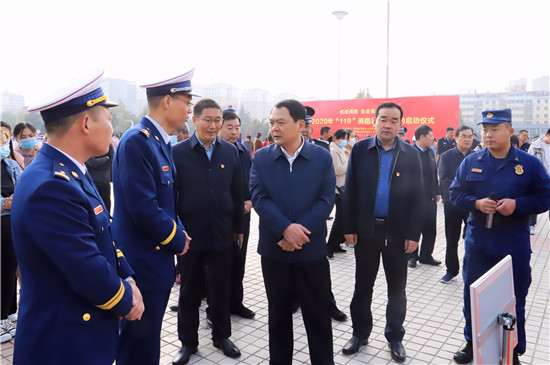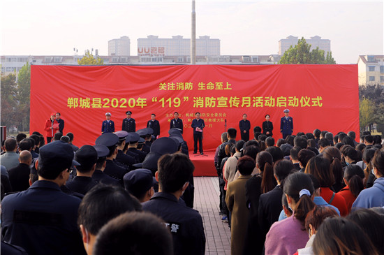 11月11日,鄲城縣在世紀廣場舉行2020年消防宣傳月活動啟動儀式,目的是進一步提高全民消防安全意識,促使“關(guān)注消防 生命至上”的主題深入人心,廣泛發(fā)動社會各界關(guān)注消防、參與消防,營造良好的宣傳氛圍,預(yù)防和減少火災(zāi)事故發(fā)生,確保人民群眾生命財產(chǎn)安全??h長李全林出席會議并宣布消防宣傳月活動啟動,縣委常委、常務(wù)副縣長胡友濤主持會議,縣領(lǐng)導謝超、王彪、陳鳳祥、李素梅及縣公安局政委趙紅建參加會議。