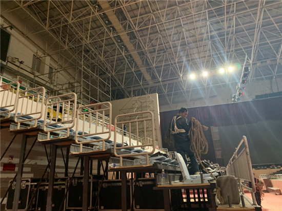 11月24日晚,記者在周口市體育館見(jiàn)到,由馬艷麗領(lǐng)銜回饋家鄉(xiāng)的周商大會(huì)國(guó)際時(shí)裝秀舞臺(tái)正在搭建中,據(jù)正在施工的工人介紹,他們每天加班加點(diǎn)布置舞臺(tái),預(yù)計(jì)26日舞臺(tái)調(diào)試完成,27日開始彩排,28日晚正式開啟時(shí)裝秀。