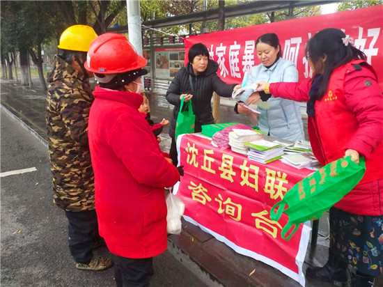 11月25日是國際反家庭暴力日。為進(jìn)一步提高全社會(huì)反家庭暴力意識,加大對《反家庭暴力法》的宣傳,有效預(yù)防和制止家庭暴力,促進(jìn)家庭和諧,保障婦女群眾在婚姻家庭中的合法權(quán)益。為此,沈丘縣婦聯(lián)在城區(qū)組織開展了以“反對家庭暴力,呵護(hù)美好生活”為主題的法治宣傳活動(dòng)。