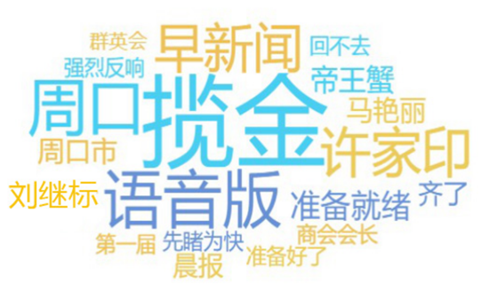網(wǎng)絡(luò)熱詞反映了網(wǎng)民關(guān)注的重點(diǎn),詞云圖中大大的“攬金”二字占據(jù)詞云圖中央,可見攬金是真的攬金,據(jù)悉,首屆周商大會(huì)簽約項(xiàng)目31個(gè),總投資達(dá)429.7億元人民幣。“許家印”“馬艷麗”在整個(gè)圖中也是光彩奪目,作為周口人,走上北上廣深的成功人士還心心念念家鄉(xiāng)的發(fā)展,讓老鄉(xiāng)們倍感溫暖,家鄉(xiāng)人關(guān)注他們?yōu)榧亦l(xiāng)發(fā)展做出的努力和他們的動(dòng)態(tài)也是再正常不過了。