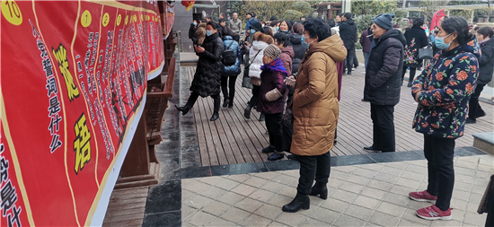 一大早,來自川匯區(qū)文聯(lián)、區(qū)民協(xié)的工作人員,將金色東方社區(qū)的休閑廣場裝扮得格外喜慶,兩條帶有傳統(tǒng)紋飾圖案的噴繪印著謎語和黨的知識,掛在休閑長廊上,吸引著出來曬太陽或散步的居民。區(qū)文聯(lián)黨組書記史濤,區(qū)文聯(lián)黨組成員、副主席游富華,區(qū)人和辦事處副書記武陽,市民協(xié)副主席羅營東、區(qū)民協(xié)主席杜超,區(qū)民協(xié)秘書長任建明等走進(jìn)社區(qū),參加這場活動。“中國共產(chǎn)黨是什么時(shí)候成立的?”“1921年7月23日”“答對了,獎(jiǎng)洗衣液一壺!”游富華以問答的形式和居民們互動,向居民們普及黨的知識,居民們紛紛參與,氣氛活躍。