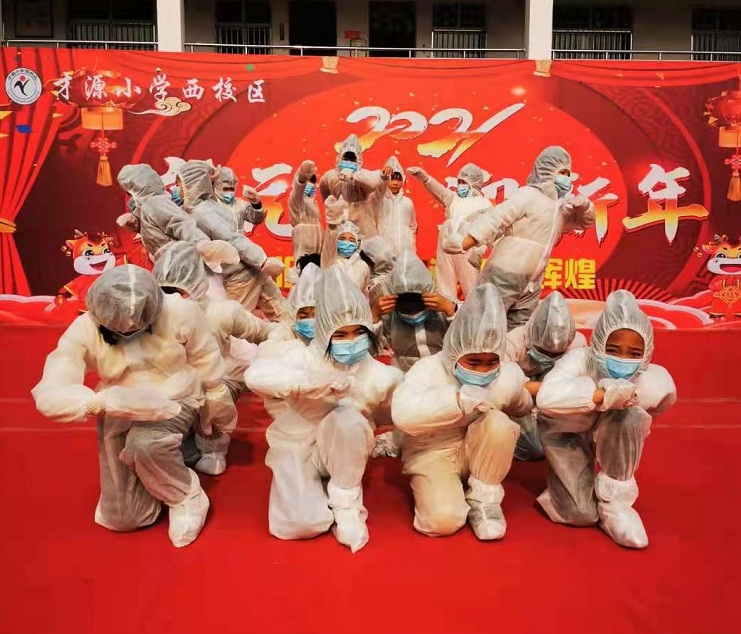 在該縣才源小學(xué)西校區(qū),三年級(jí)三班、四班、六班、八班合作編排了《與時(shí)間賽跑》情景劇,充分展示了在抗擊疫情期間,醫(yī)護(hù)人員奮勇當(dāng)先的責(zé)任擔(dān)當(dāng),逆行出征的義無(wú)反顧,風(fēng)雨兼程的無(wú)私奉獻(xiàn)。舞臺(tái)上,孩子們的精彩表演,獲得了陣陣掌聲。