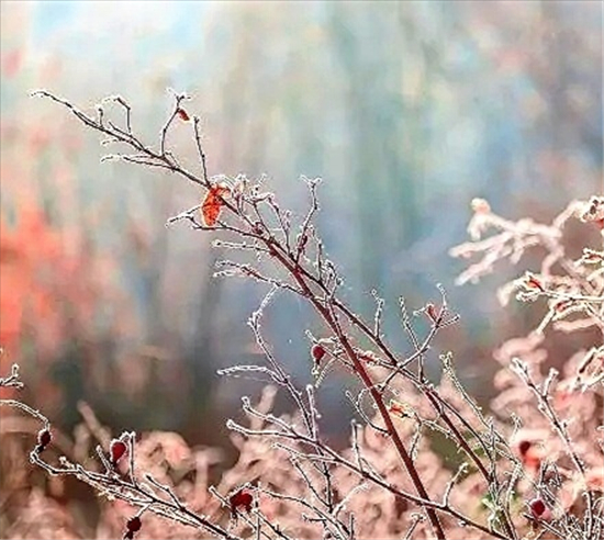 有詩云:“早寒青女至,零露結(jié)為霜。入夜飛清景,凌晨積素光?!?月6日,清晨時(shí)分,我市中心城區(qū)一層層雪白的霜花凝結(jié)在花草樹木等植物上,晶瑩剔透,令人驚艷,尤其在晨光的映照下,滿目的霜花就像一層銀光,把世界裝點(diǎn)得格外美麗。③2