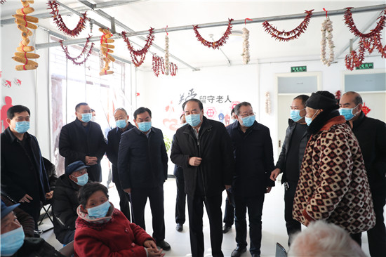 太康縣大許寨格花里行政村居村聯(lián)養(yǎng)點(diǎn)占地5畝,入住特困老人80余人,社會留守老人3人,老人們在這里有吃有穿還有娛樂活動,生活得十分幸福。徐濟(jì)超一行走進(jìn)大許寨鎮(zhèn)葛花李居村聯(lián)養(yǎng)點(diǎn),向老人們祝賀新春。徐濟(jì)超指出,各級各部門要始終堅(jiān)持以人民為中心的發(fā)展思想,踐行初心使命,聚焦群眾冷暖,用足用好惠民政策,千方百計(jì)幫助群眾解決實(shí)際問題,讓群眾老有所養(yǎng)、病有所醫(yī)、住有所居,讓大家共享改革發(fā)展成果,確保讓廣大群眾過個(gè)歡樂祥和的新春佳節(jié)。