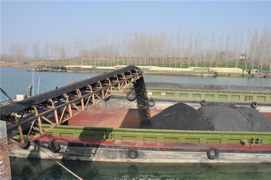 春節(jié)臨近,用電高峰到來,發(fā)電用煤量大增,商水港比平時更忙?!拔覀円惶炀湍馨岩粋€火車專列的煤裝運到船上,駛向下游城市!”在現(xiàn)場指揮的商水港負責人孫玉田指著沙河中停泊的10多個貨運船說。