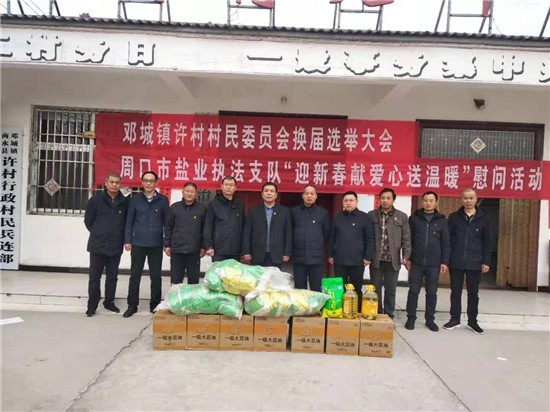 新春佳節(jié)來(lái)臨之際,為確保困難群眾過(guò)上一個(gè)歡樂(lè)喜慶文明祥和的春節(jié),2月7日,市鹽業(yè)執(zhí)法支隊(duì)黨委書(shū)記、支隊(duì)長(zhǎng)丁永華帶領(lǐng)班子成員到商水縣鄧城鎮(zhèn)許村開(kāi)展扶貧幫扶、春節(jié)慰問(wèn)活動(dòng),走訪(fǎng)慰問(wèn)困難群眾,為他們送去米、食用油等慰問(wèn)品,并送去黨和政府的關(guān)懷。