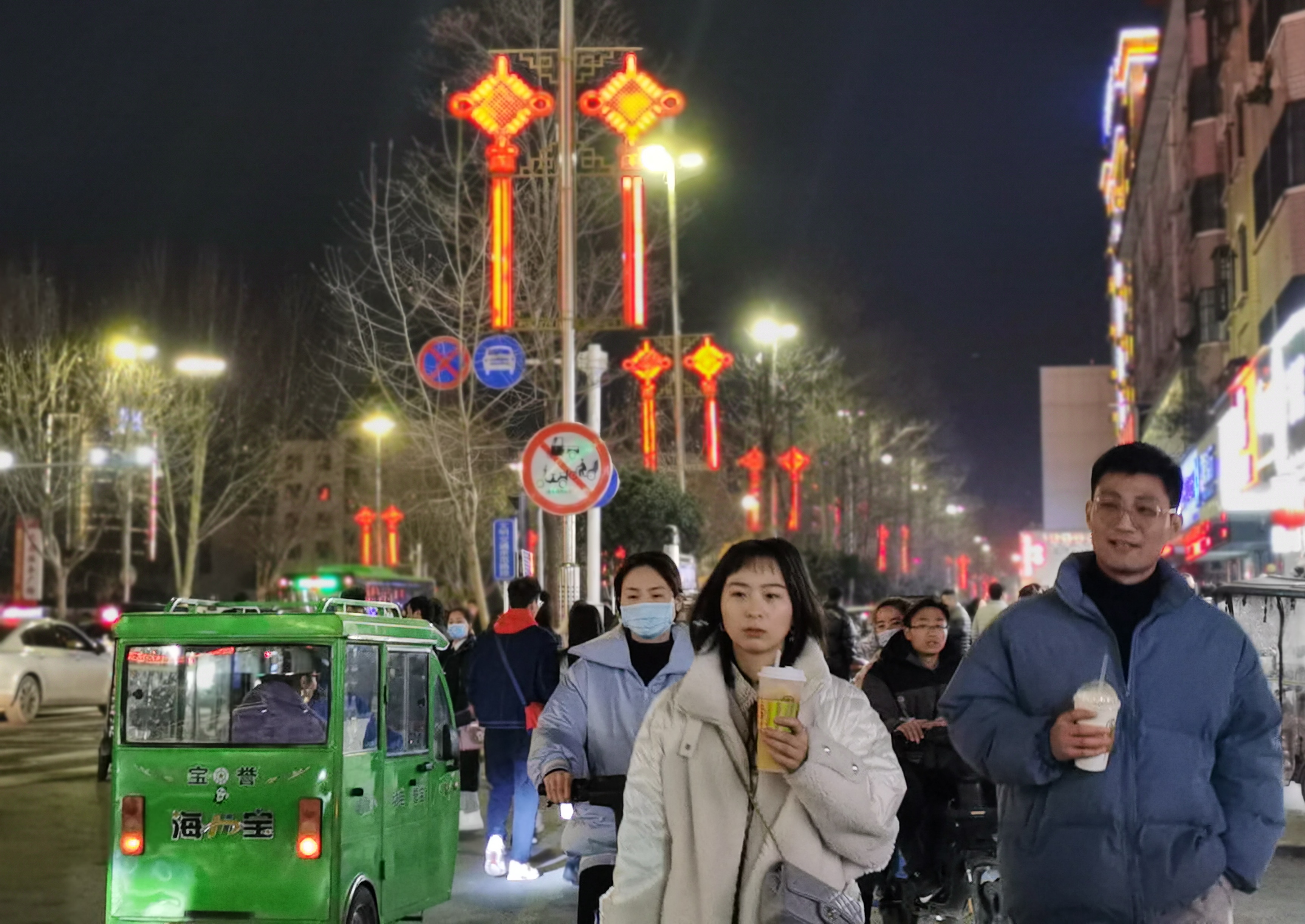2021年春節(jié)將至,為給大家營造愉悅、喜慶、歡樂的節(jié)日氛圍,中心城區(qū)七一路掛上了中國結(jié)造型的彩燈,兩邊的商店也在門口掛起了各種紅燈籠。夜幕降臨后,紅彤彤的燈籠亮起來,街道變得絢麗多彩,把市區(qū)裝點得年味十足。②7