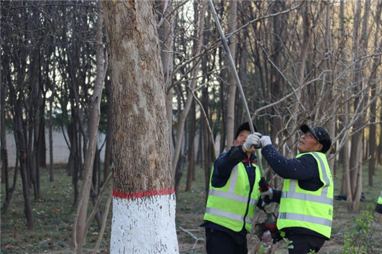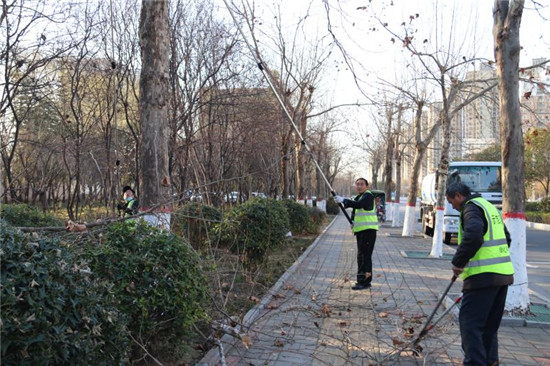 2月21日,城鄉(xiāng)一體化示范區(qū)城管局幾名市政管理人員在修剪周口大道兩旁的行道樹。據(jù)了解,通過一年的生長,行道樹衍生了許多無用枝條,如果對這些無用枝條不進行修剪,勢必影響今年的長勢。目前,道路兩邊的行道樹開始發(fā)芽,正是一年當中修剪的有利時機。城鄉(xiāng)一體化示范區(qū)城管局每天出動三班技術人員,對轄區(qū)內(nèi)的行道樹進行修剪。