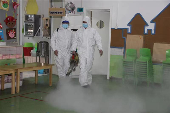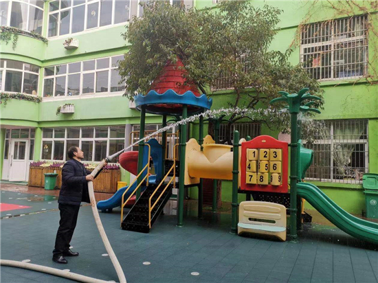 2月27日下午, 周口市市直幼兒園聯(lián)系周口市藍(lán)天救援隊(duì)專(zhuān)業(yè)消殺人員,對(duì)幼兒園的公共區(qū)域環(huán)境、大型玩具、走廊、活動(dòng)室等場(chǎng)所逐步實(shí)施消殺,重點(diǎn)對(duì)樓道、樓梯扶手、衛(wèi)生間等關(guān)鍵區(qū)域?qū)嵤┟芗?,做到全面、徹底、不留死角?/p>