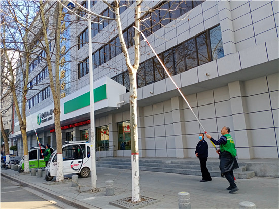 3月4日下午,在中心城區(qū)人民路上,園林工人正在對道路邊的綠化樹進行修剪,讓樹木保持良好的形狀和長勢。周口日報·周道客戶端記者 張洪濤 攝