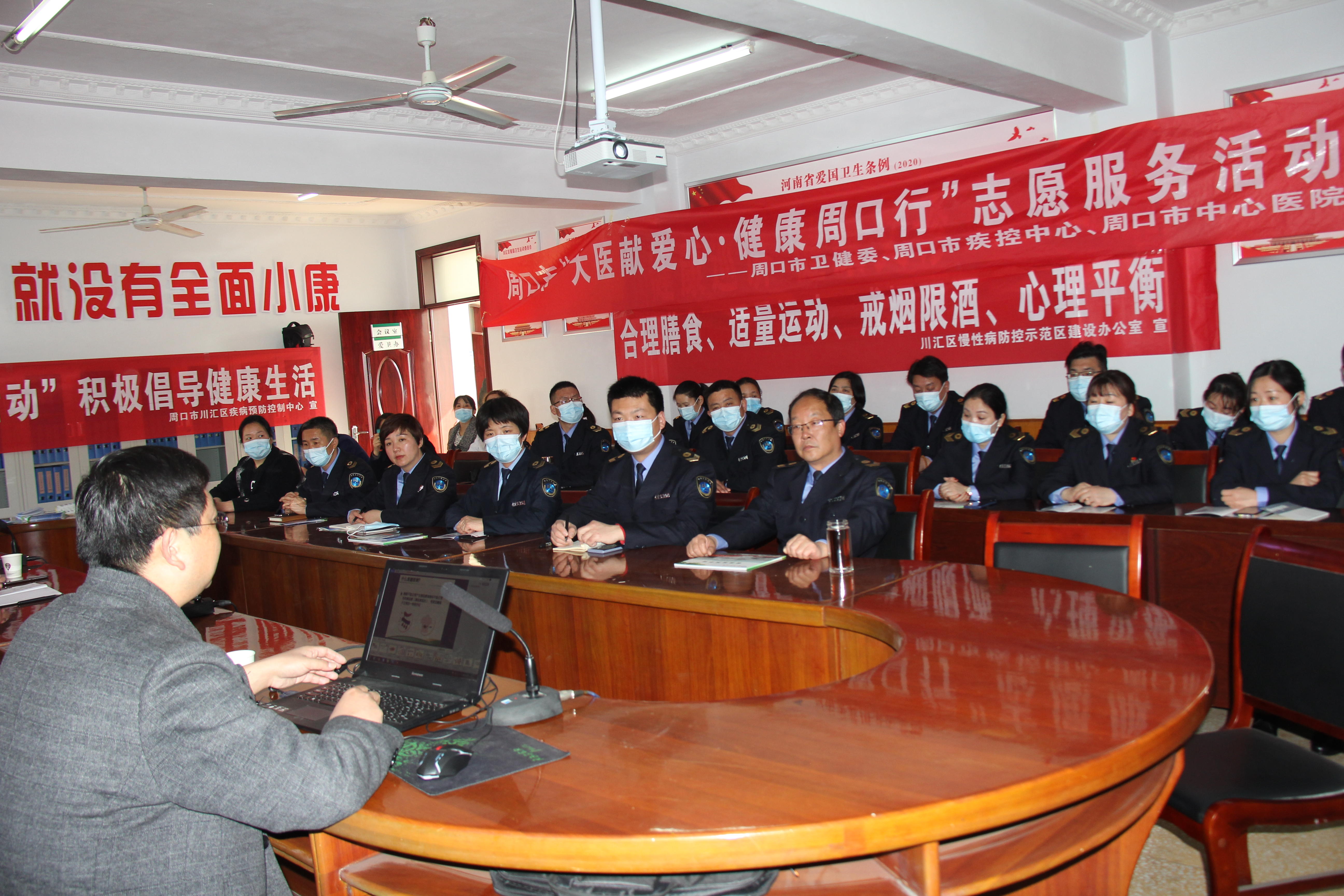 為深入開展“河南省新時代文明實踐推動周”活動,3月4日下午,由川匯區(qū)衛(wèi)健委組織,市健康教育所、市中心醫(yī)院、區(qū)健康教育所、區(qū)疾病預防控制中心、區(qū)慢性病防控示范區(qū)建設辦公室、人和社區(qū)衛(wèi)生服務中心等單位承辦的“新時代文明實踐推動周”“健康周口行 大醫(yī)獻愛心”健康科普活動走進川匯區(qū)衛(wèi)生計生監(jiān)督所。講座邀請周口市中心醫(yī)院內(nèi)分泌專家楊東輝為川匯區(qū)衛(wèi)生計生監(jiān)督所干部職工送上“糖尿病如何科學防治”健康科普知識講座。