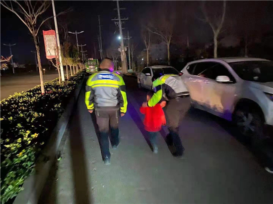 3月12日晚,鄲城縣交警大隊(duì)鐵騎中隊(duì)副中隊(duì)長(zhǎng)張?chǎng)沃蛋噙^程中發(fā)現(xiàn)一位迷路小孩,張新等人想方設(shè)法把孩子護(hù)送回家。