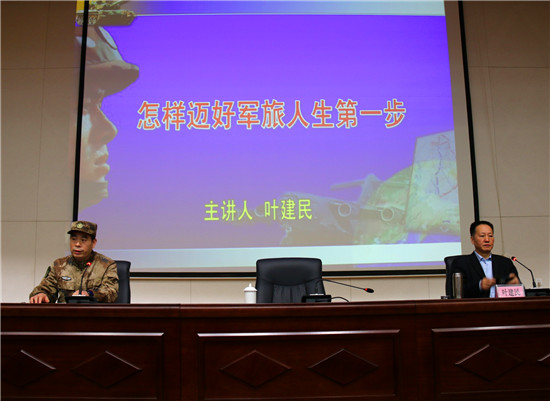 授課中,葉建民教授結(jié)合當(dāng)前國(guó)際國(guó)內(nèi)形勢(shì)和自身經(jīng)歷,深刻剖析了強(qiáng)國(guó)強(qiáng)軍的重要意義。為即將參軍入伍的“準(zhǔn)新兵”,如何端正入伍動(dòng)機(jī)、適應(yīng)部隊(duì)生活、弘揚(yáng)尚武精神、立志軍營(yíng)建功立業(yè),指明了前進(jìn)方向。葉教授整個(gè)授課見解獨(dú)到、分析透徹,語(yǔ)言精彩、內(nèi)涵深刻,讓人深受啟發(fā)、獲益匪淺,授課過程中多次爆發(fā)熱烈的掌聲。