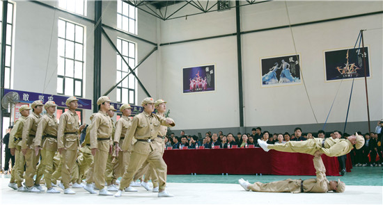 4月12日下午,項城市雜技藝術(shù)學(xué)校通過運用雜技藝術(shù)編創(chuàng)的紅色雜技劇,在該校首次面向社會展演,以慶祝建黨100周年。同學(xué)們穿著解放軍服裝,模擬渡江、登城、翻越城墻、槍林彈雨戰(zhàn)斗等場景,演繹了一場紅色文化教育的情景劇,讓人耳目一新,受到大家一致好評。周口日報·周道客戶端記者 梁照曾 攝