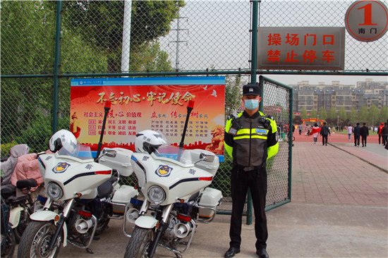 4月16日,鄲城一高舉行第12屆18歲成人儀式暨奠基高考決勝2022誓師大會(huì)。鄲城縣公安局副局長(zhǎng)朱衛(wèi)兵率領(lǐng)交警鐵騎隊(duì)兵分4路,從早上7時(shí)至上午11時(shí)在學(xué)校周圍維護(hù)交通秩序,確保數(shù)千名家長(zhǎng)的車輛有序停放,疏堵保暢。