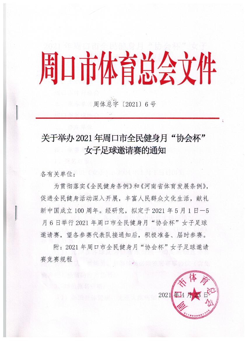 近日,記者從市足協(xié)獲悉,五一期間,我市將迎來2021年周口全民健身月“協(xié)會(huì)杯”女子11人制足球邀請(qǐng)賽,屆時(shí),將有來自省內(nèi)外的10多支女子足球隊(duì)蒞臨周口,展開角逐。