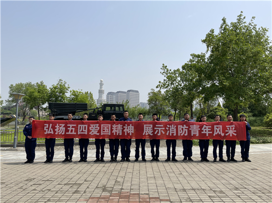 5月4日上午,天氣晴朗。在周口公園,周口市城鄉(xiāng)一體化示范區(qū)消防大隊(duì)的青年消防隊(duì)員們通過跑步訓(xùn)練等方式慶祝五四青年節(jié)。消防隊(duì)員欒慶帥告訴記者:“今天是五四青年節(jié),我們通過訓(xùn)練、參觀國(guó)防設(shè)施這樣的方式,來表達(dá)我們的愛國(guó)熱情?!?span style="text-indent: 32px;">②9