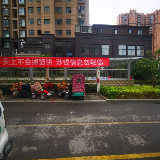 據(jù)介紹,“金色東方”小區(qū)建成于2014年,占地120畝,居住人口2516戶,共8176人。廣場(chǎng)是小區(qū)里最熱鬧的地方。這里不僅擺放著詐騙案例展板,而且LED大屏上反復(fù)播放“局長(zhǎng)說(shuō)反詐”視頻,時(shí)刻提醒居民繃緊防詐弦。通過(guò)張貼標(biāo)語(yǔ)、擺放展板、播放視頻等形式,“金色東方”小區(qū)營(yíng)造了全方位反詐的濃厚氛圍,基本達(dá)到“處處有提醒”的效果。據(jù)悉,2月份以來(lái),該小區(qū)未發(fā)生一起電信網(wǎng)絡(luò)詐騙案件。