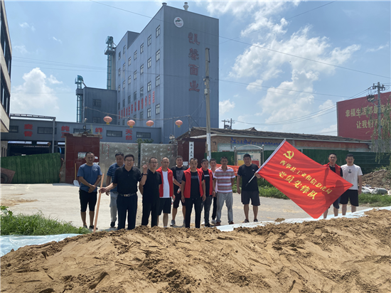 西華縣“萬人助萬企”活動辦公室副主任、縣工信局局長趙宏偉立即向縣“萬人助萬企”指揮部進行了匯報,并組織工信局防汛應(yīng)急突擊隊16名隊員迅速趕往西華縣凱馨面粉廠,裝沙袋,加固糧倉,運沙土,筑牢廠區(qū)第一道防水隔離帶。防汛應(yīng)急突擊隊隊員僅用2個小時的時間完成了企業(yè)的防汛要求,企業(yè)負(fù)責(zé)人十分滿意。 ③7