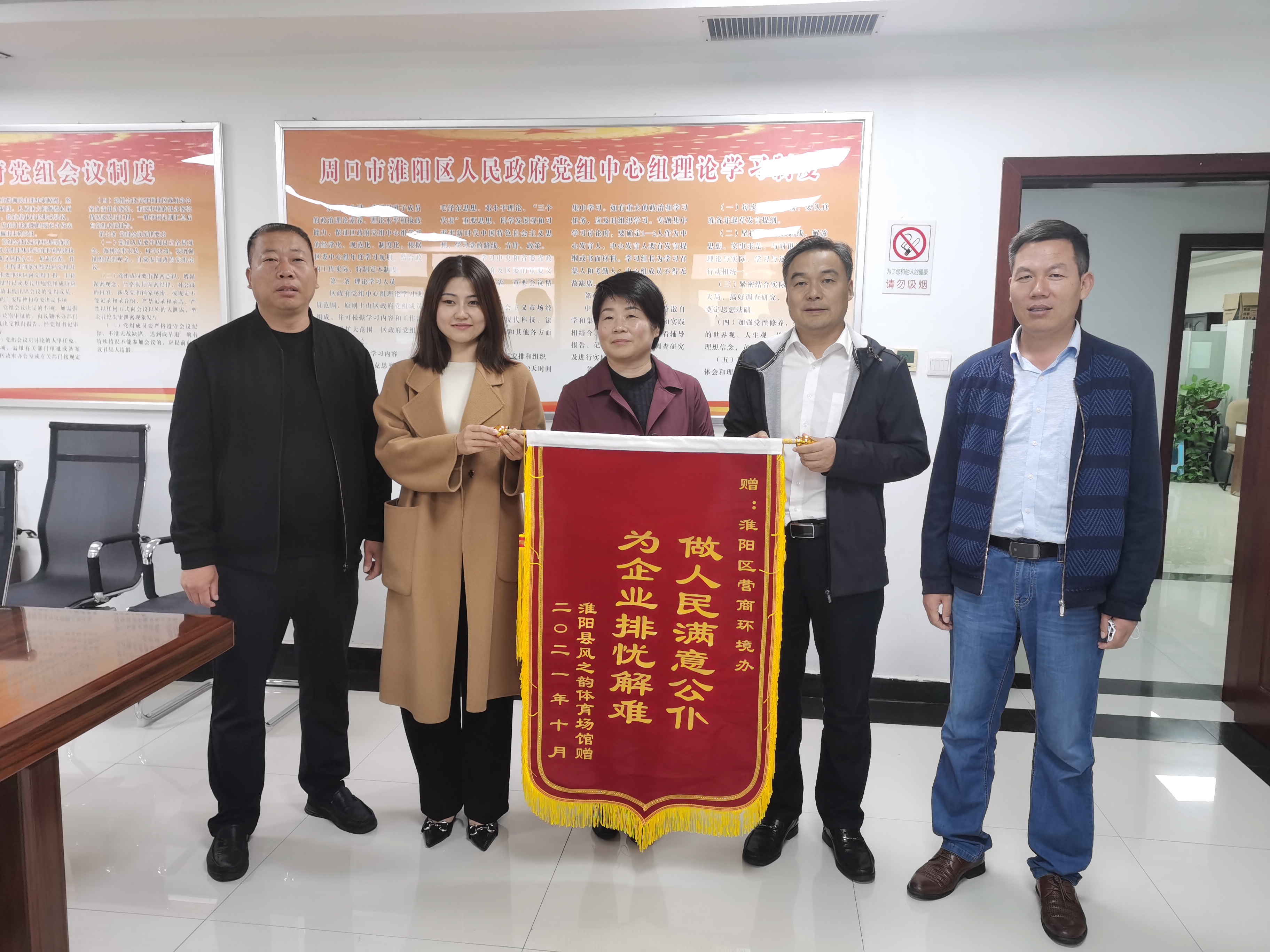 10月8日下午,淮陽區(qū)風(fēng)之韻體育館負(fù)責(zé)人把一面印著“做人民滿意公仆 為企業(yè)排憂解難”的錦旗送到淮陽區(qū)優(yōu)化營商環(huán)境辦公室,對區(qū)營商辦協(xié)調(diào)職能部門容缺辦理,快速解決企業(yè)痛點(diǎn)難點(diǎn)問題表示感謝。