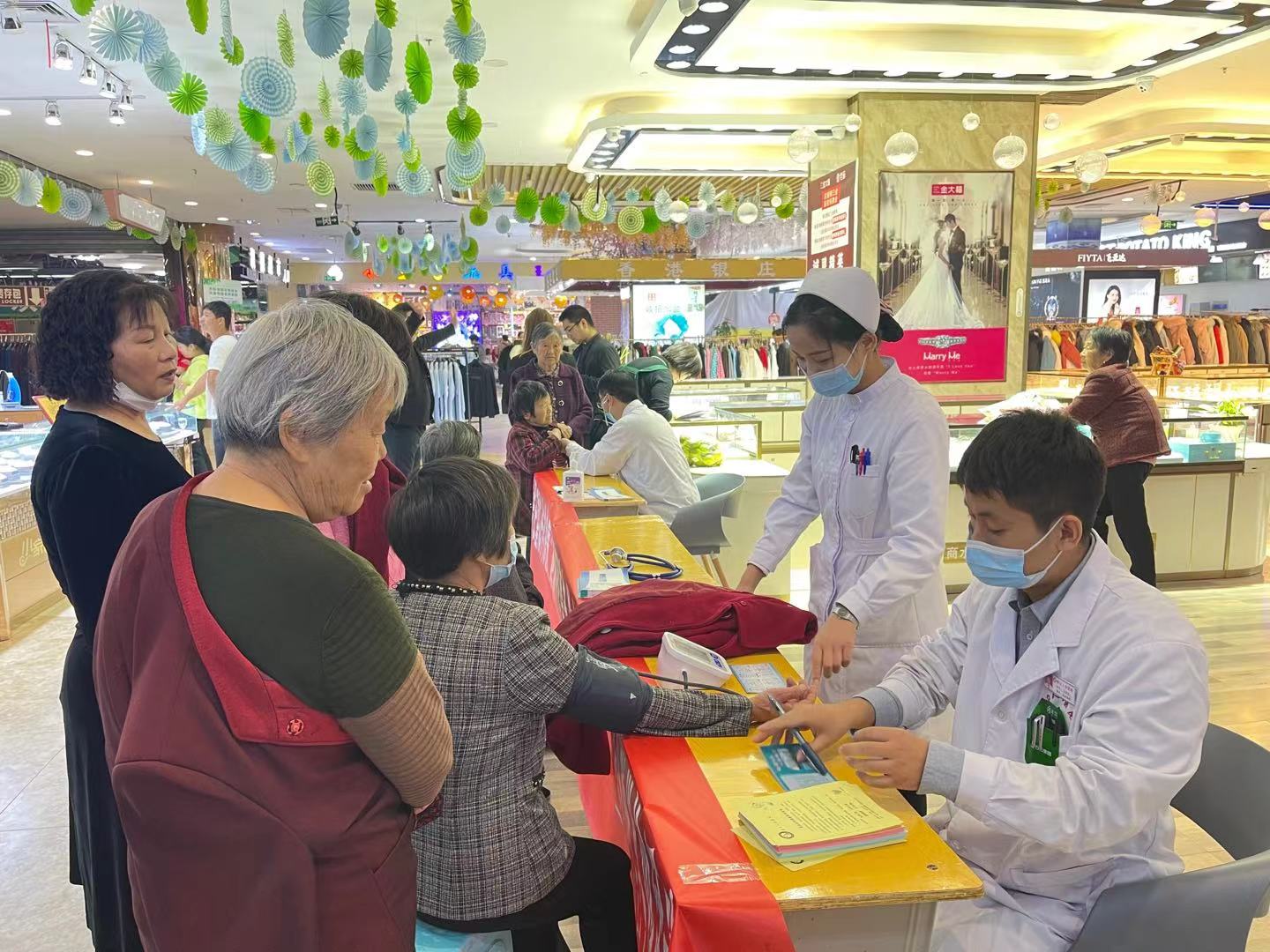 當天上午,周口人合醫(yī)院的醫(yī)護人員在商水縣潤德商場為這里的老人提供咨詢、會診、體檢、保健等一系列服務(wù)。醫(yī)護人員專注認真地為每一位老人測量血壓、檢測空腹血糖、測量體脂、檢查身高體重等,同時還進行了常見病、多發(fā)病的健康普查,讓老人們享受到便捷、滿意的醫(yī)療服務(wù)。