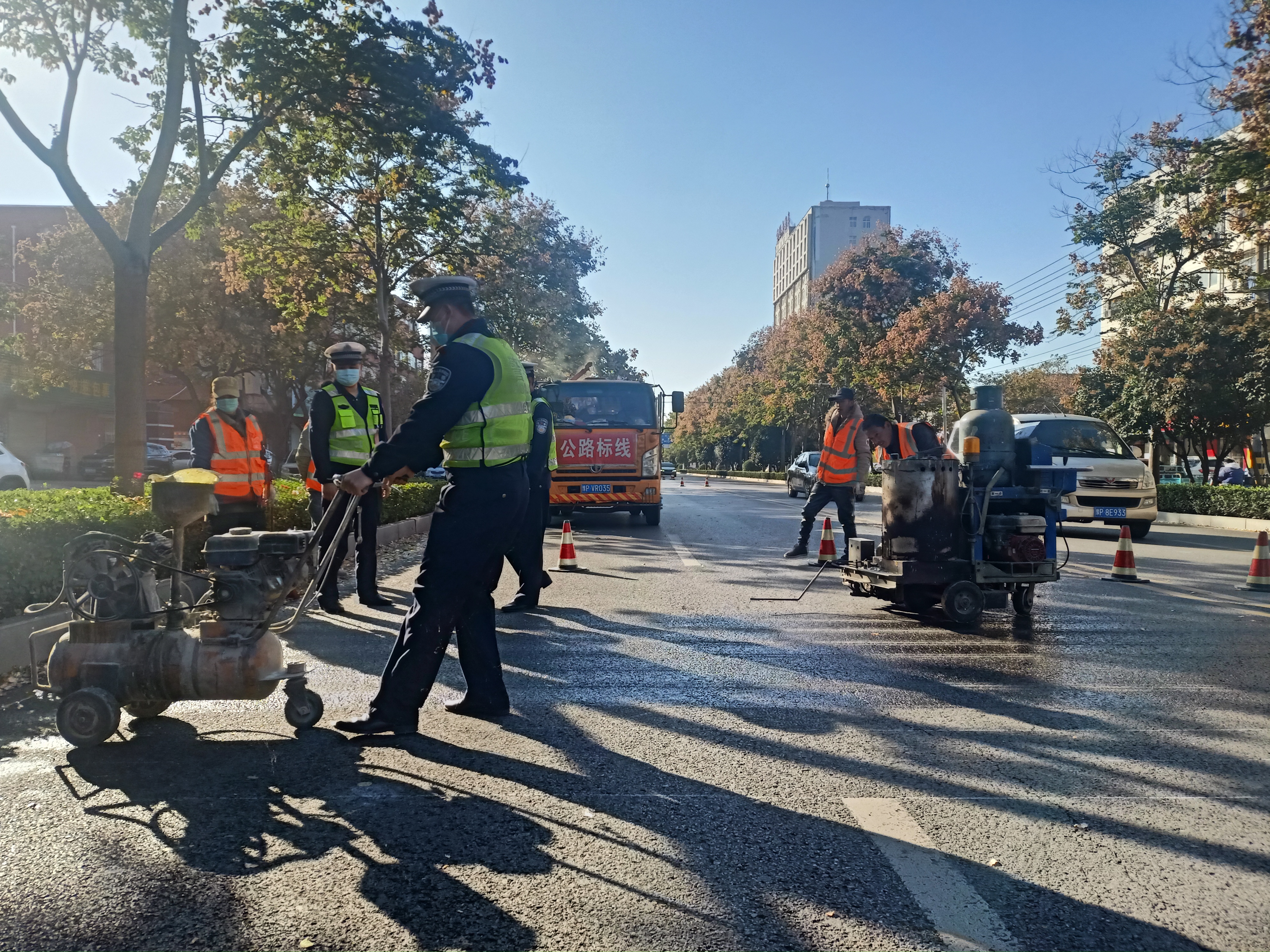 當(dāng)日下午,記者在黃河路看到,施工人員正在熟練地操作標(biāo)線機(jī),認(rèn)真細(xì)致地施劃減速震蕩標(biāo)線。市公安局交通管理支隊(duì)設(shè)施維護(hù)中心(以下簡稱設(shè)施維護(hù)中心)工作人員黃勇說:“在創(chuàng)文期間,設(shè)施維護(hù)中心加大對(duì)道路護(hù)欄的清洗力度,完善交通信號(hào)燈的維護(hù),清除學(xué)校門口不合理的停車位,修剪遮擋交通設(shè)施的樹枝,排除路口的交通隱患。”