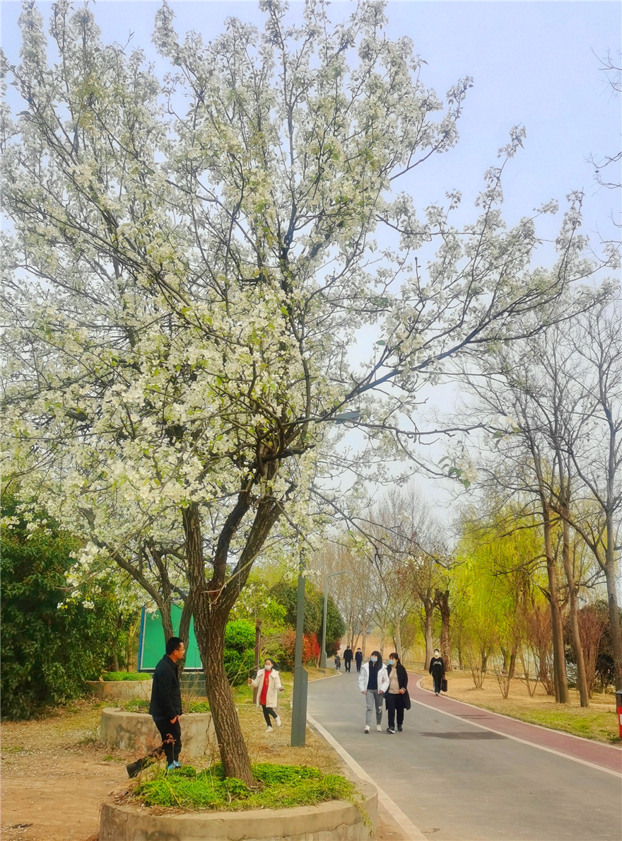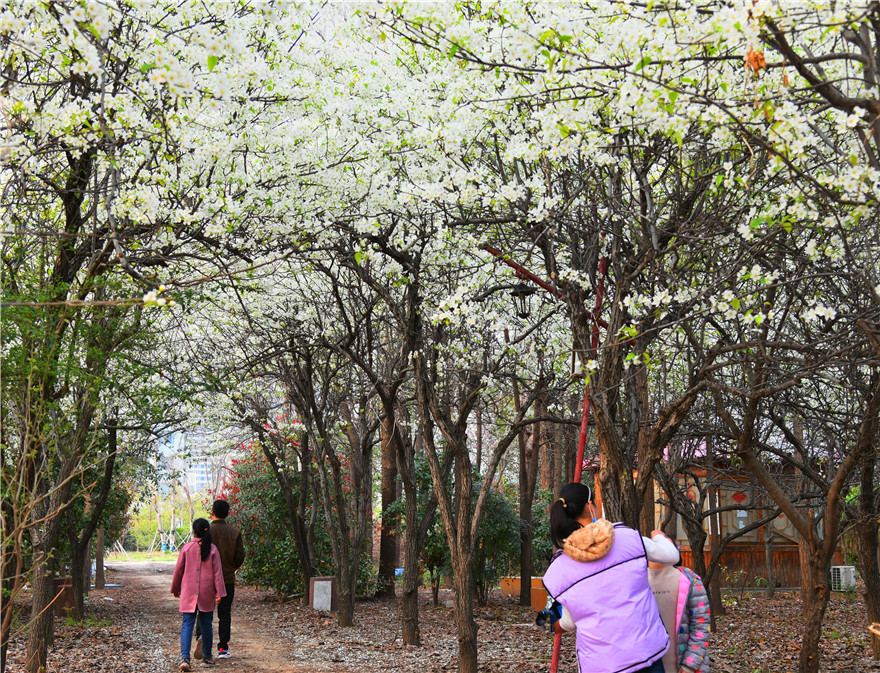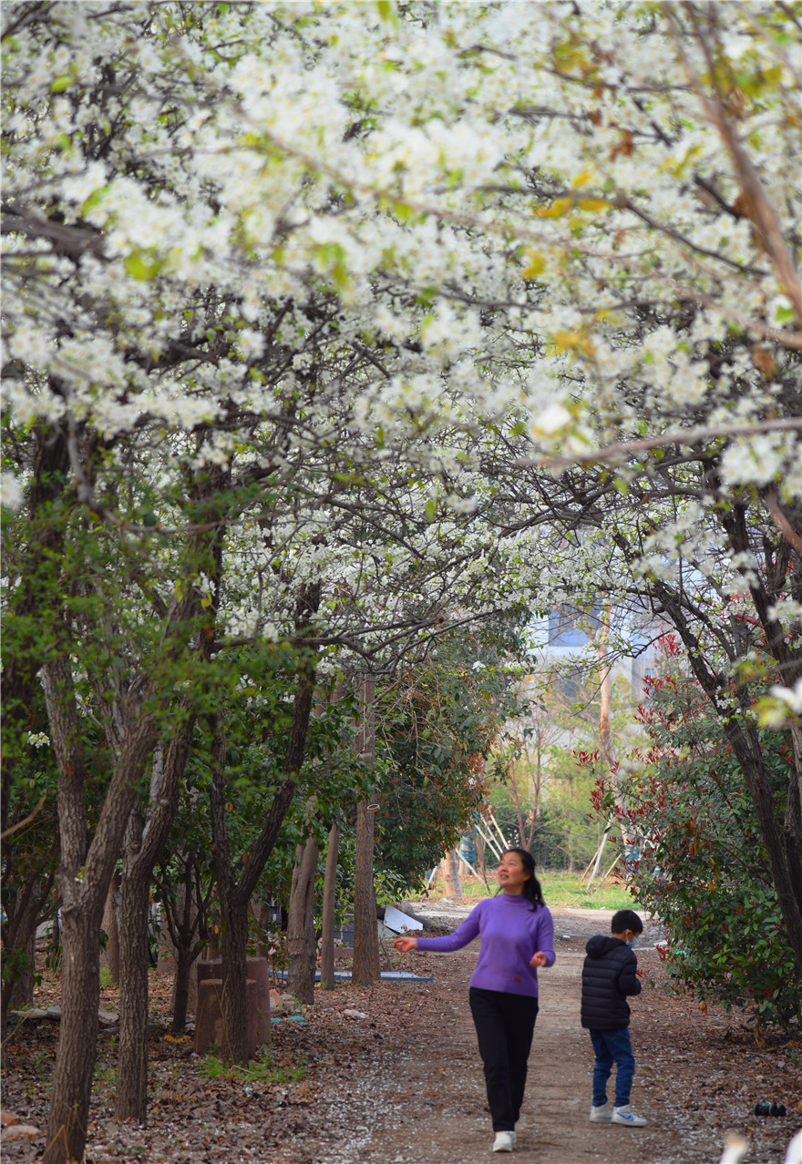 3月26日,周口市天氣晴好,植物園內(nèi)岸柳青青、鶯飛草長(zhǎng)。園內(nèi)的梨花正是盛開(kāi)時(shí),不少市民在此駐足觀賞拍照。②8